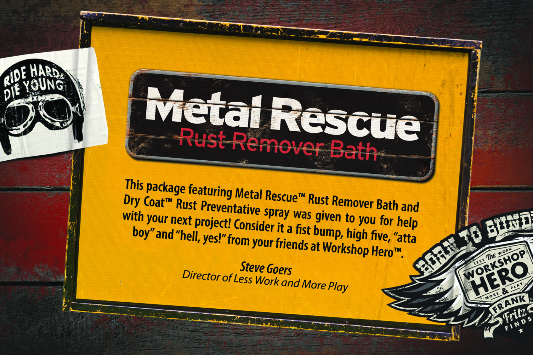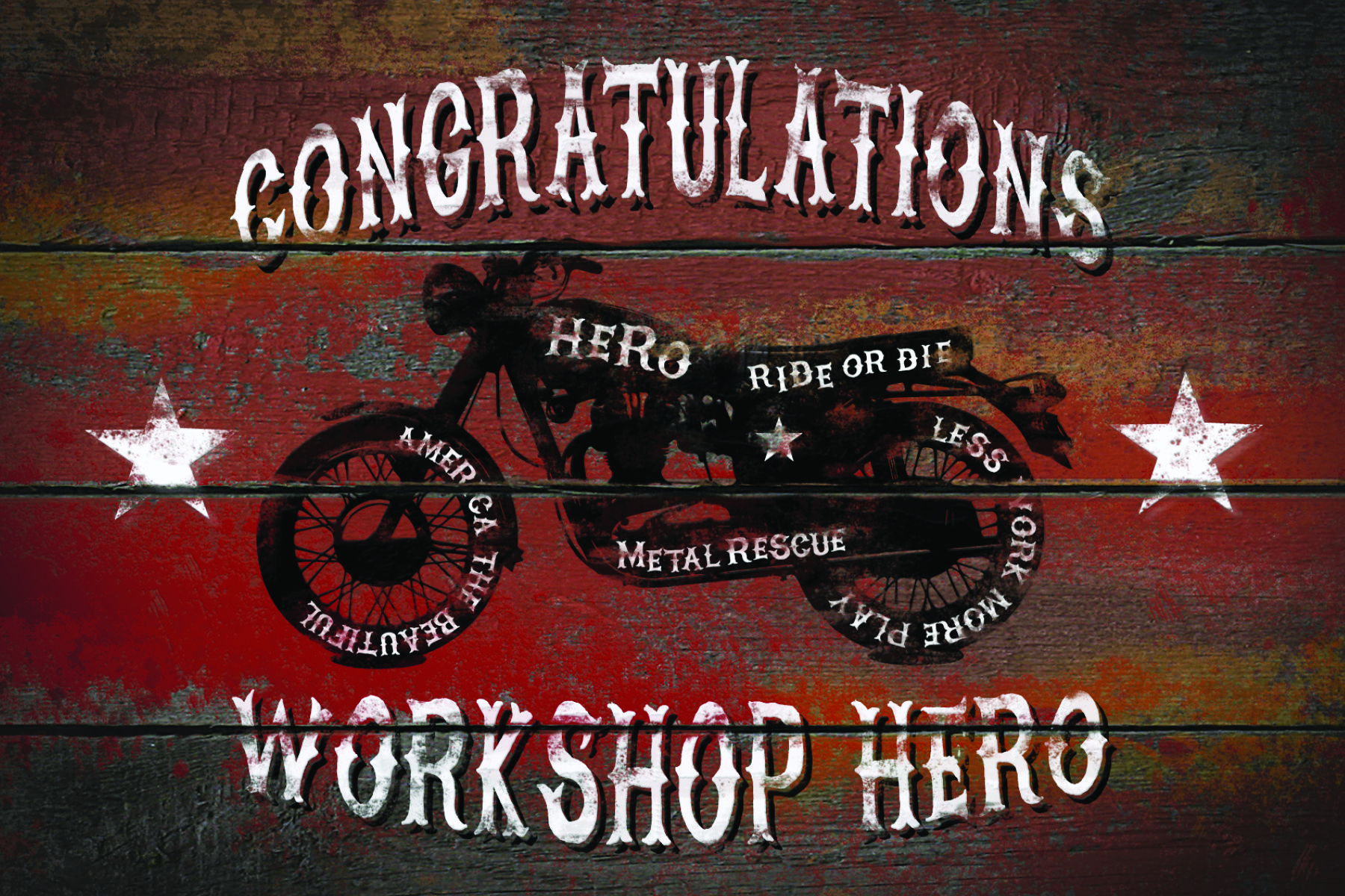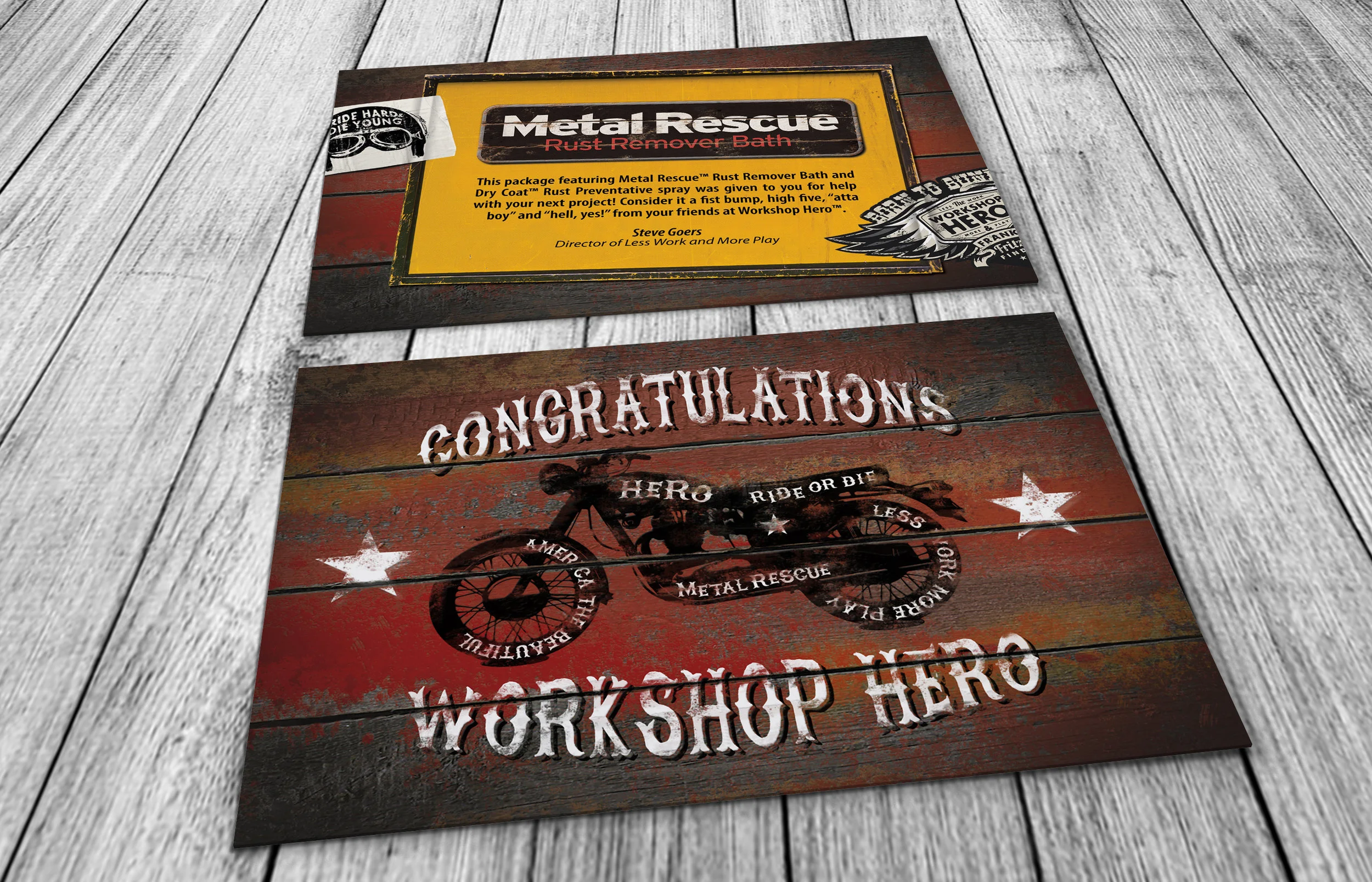 As the graphic design intern at Workshop Hero in Howell, Mi., I created this direct mail postcard for the winners of a bike builder’s competition. The winners received a package with our products and Workshop Hero swag along with this postcard. Designing this postcard, I focused on a worn vintage look for overall brand consistency.